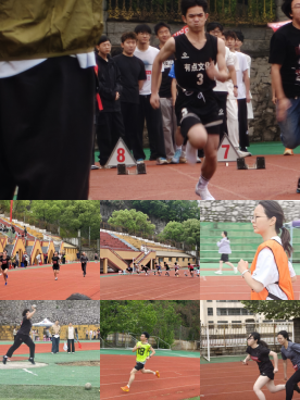 赛场上,各项赛事如火如荼。学院短跑运动员奋力冲刺,长跑选手坚持不懈,跳远跳高项目凝聚汗水与努力,接力比赛传递团结与信任。赛场下,学院啦啦队呐喊助威、志愿者提供后勤保障,全院师生互帮互助,让运动会充满温暖。