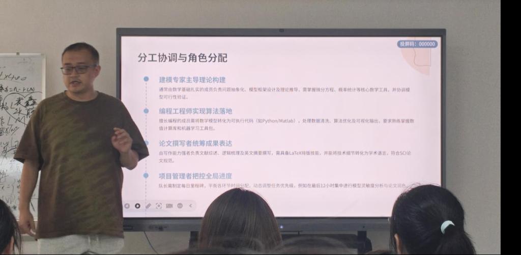 对于参赛,程博士给出许多宝贵建议。论文方面,要学会美化论文、合理利用AI、完善细节,且务必认真审题,不放过任何关键信息;团队协作上,需做好分工协调、角色分配及把控全局进度。制定每日里程碑,合理分配时间,动态调整任务优先级。以角色分配为例:建模手负责理论构建,由数学基础扎实者承担问题抽象、模型设计与推导工作,熟练运用微分方程、概率统计等工具,并对模型可行性进行验证;编程手负责算法实现,将数学模型转化为 Python/Matlab 等可执行代码,完成数据清洗、算法优化与可视化,熟练运用数值计算库和机器学习工具包;论文手负责成果表达,由写作能力强者完成文献综述、逻辑梳理和英文摘要撰写,掌握 LaTeX 排版技能,将技术细节转化为符合 SCI 规范的学术语言。