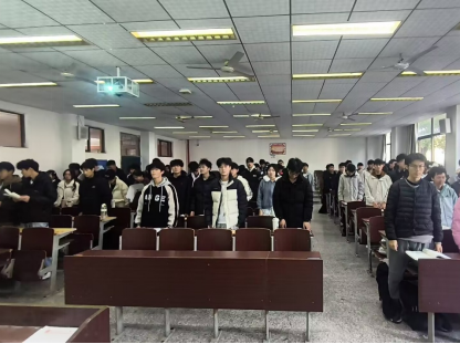 在各班级负责人的带领下,同学们肃立,对着大屏观看宪法文本,齐声诵读宪法序言及公民基本权利与义务等核心条款。庄严的条文通过青年学子清晰而有力的声音回荡在教室与校园角落,既彰显了宪法的神圣与尊严,也展现了新时代大学生对法治的尊崇与认同。诵读过程中,同学们神情专注、态度肃穆,在逐字逐句的品读中深刻领会宪法作为国家根本大法的核心要义,明确自身享有的权利与应尽的义务,切实感受到宪法与个人成长、校园生活、社会发展的紧密联系。